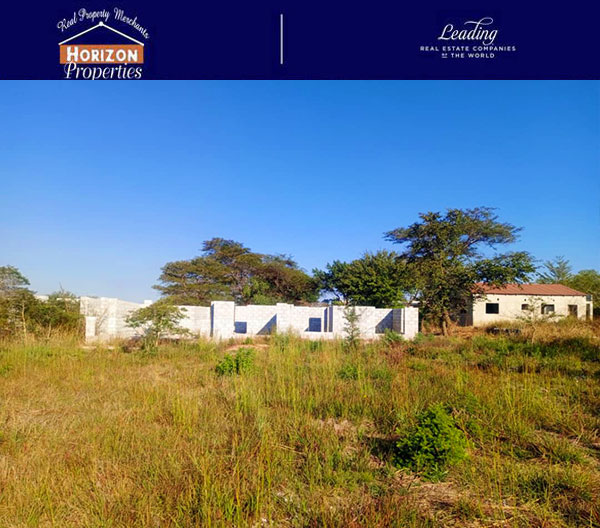 4-bedroom incomplete house with 2 fishponds sitting on a 100×65 plot. The property is located 2 kilometers off Great East Road and 900 meters from Chalimbana Road in a developing neighborhood.