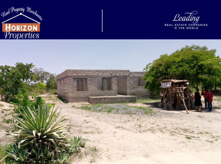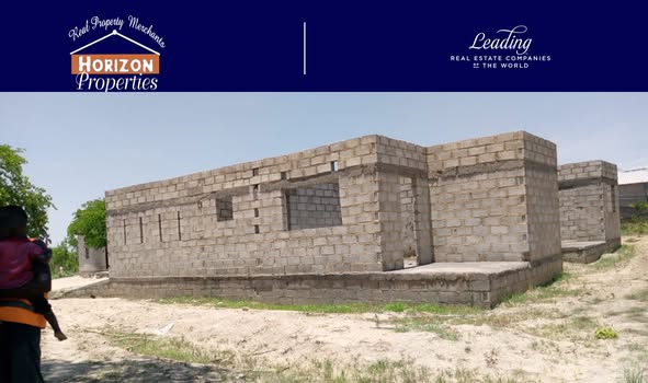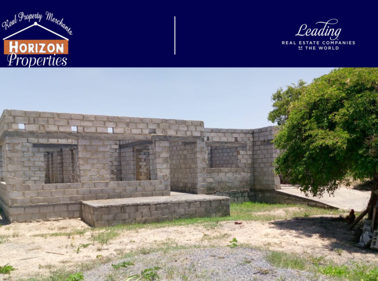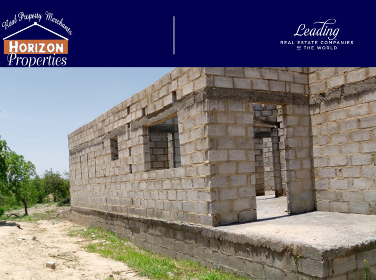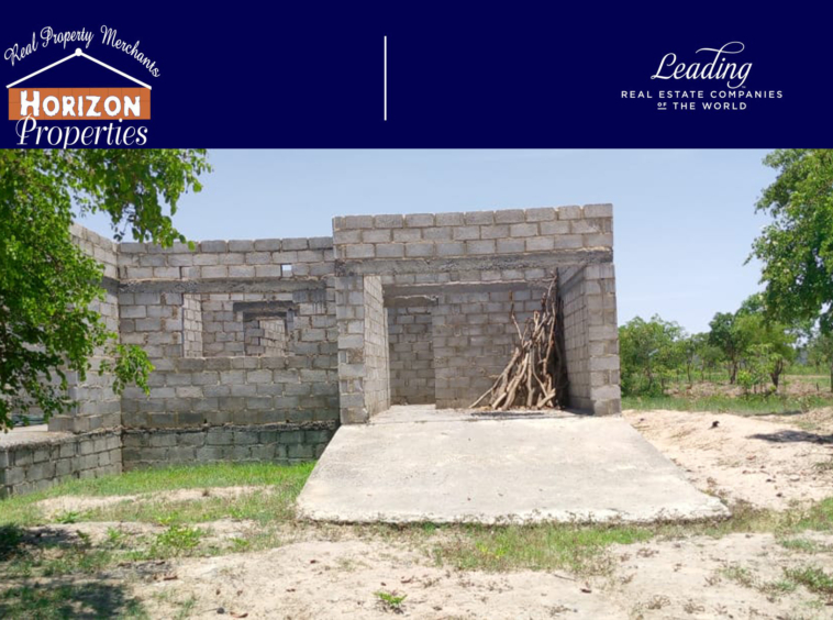 Incomplete 3 bedroom house sitting on a 50×50 titled plot a with caretakers house, located 1.5km off Leopards Hill Road.