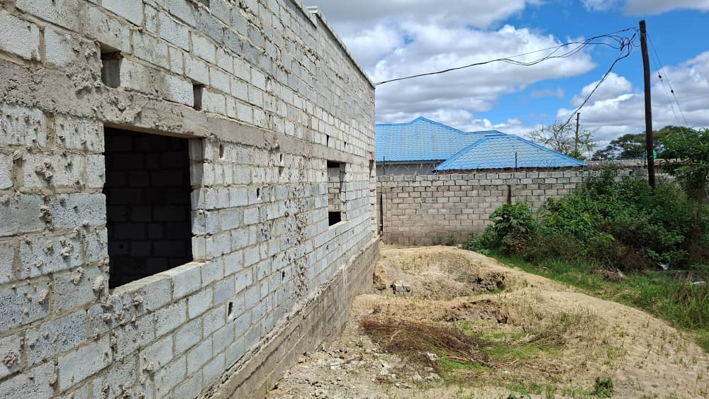 2 bedroomed semi-detached incomplete flats sitting on a 20×40 titled plot. The property is located about 900 meters form The Great East Road, behind UNILUS.